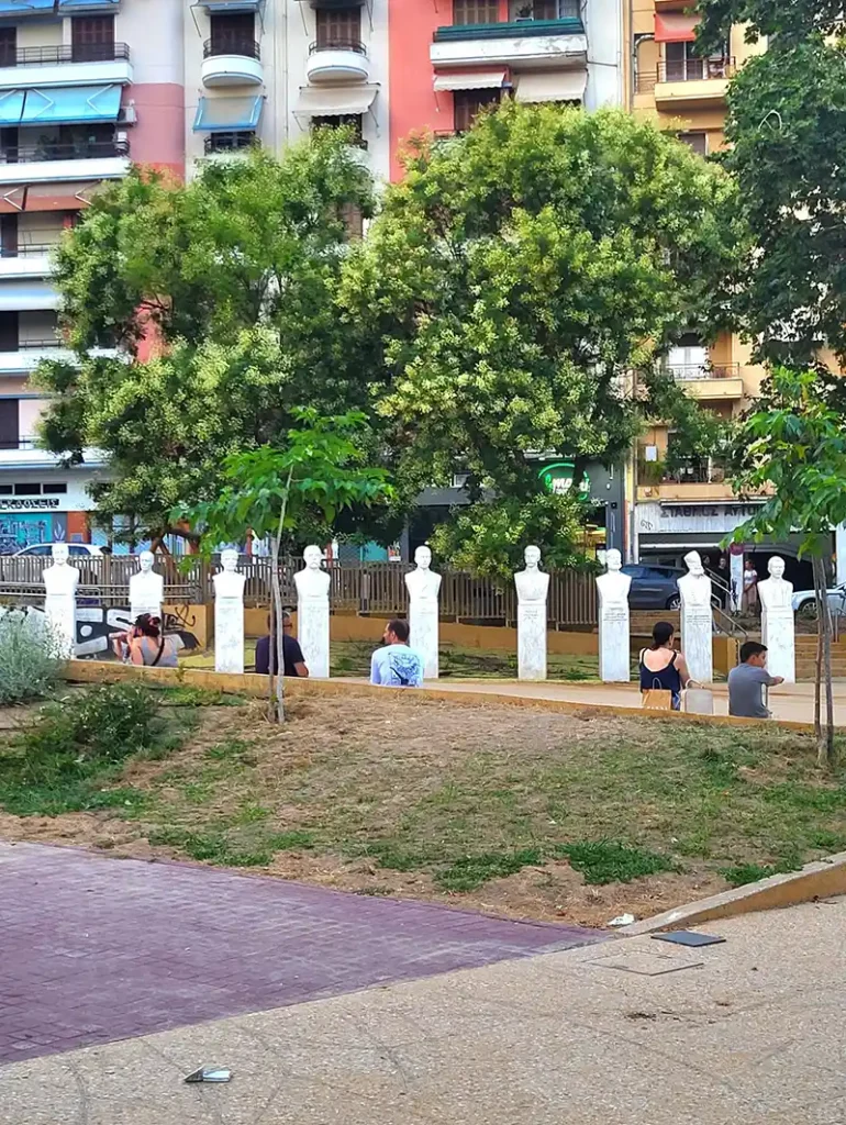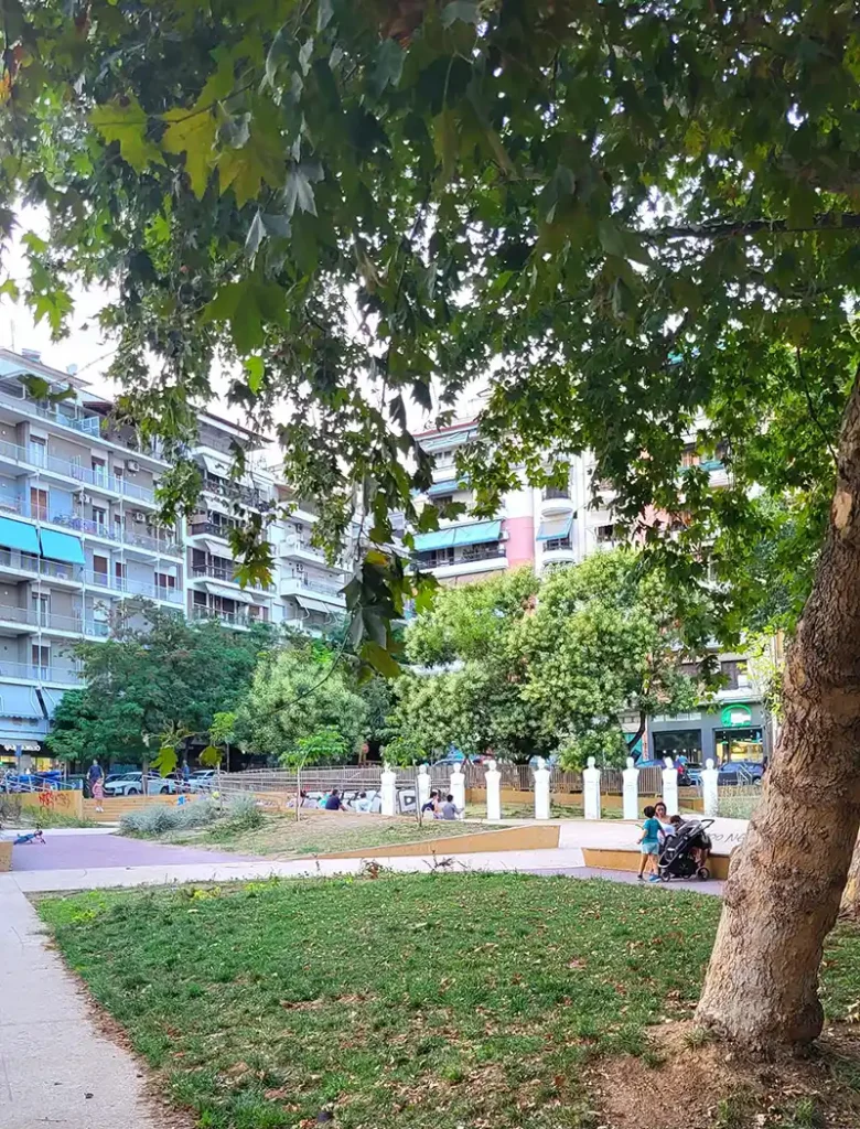 Η πλατεία Μακεδονομάχων, τόπος χαλάρωσης και διεξόδου για τους κατοίκους της περιοχής, μικρούς και μεγάλους, περιμένει την τελική της μορφή. Τριγύρω, κάποια διατηρητέα που δεν έχουν δυστυχώς να περιμένουν τίποτα.